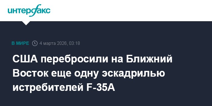 Москва. 4 марта. INTERFAX.RU - ВВС США перебросили на Ближний Восток еще одну эскадрилью стелс-истребителей пятого поколения F-35A Lightning II в составе 12 самолетов, следует из данных портала Itamilradar.