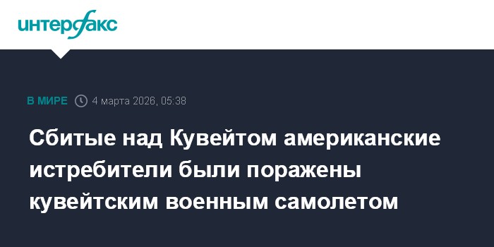 Москва. 4 марта. INTERFAX.RU - Три американских истребителя F-15E Strike Eagle, сбитых в понедельник над Кувейтом, были поражены кувейтским истребителем F/A-18 Hornet, а не наземной системой ПВО, сообщила газета The Wall Street Journal, ссылаясь на три информированных источника.