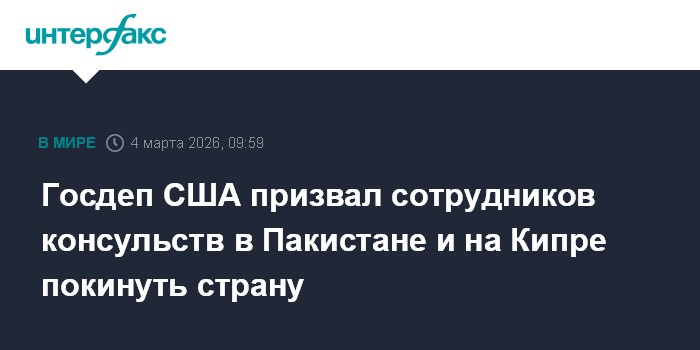 Москва. 4 марта. INTERFAX.RU - Госдеп США отдал распоряжение покинуть страну сотрудникам, не исполняющим ключевые функции, в консульствах страны в городах Лахор и Карачи в Пакистане, а также на Кипре, сообщают в среду западные СМИ.