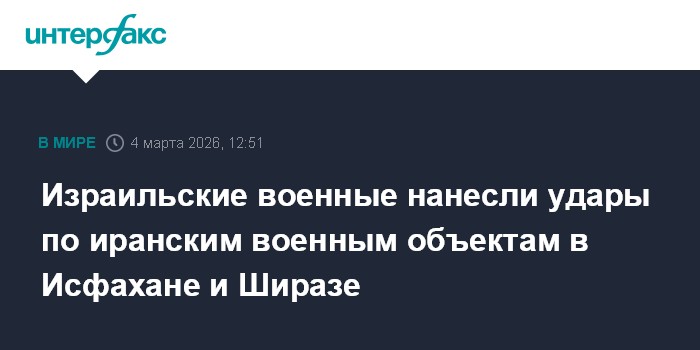 Москва. 4 марта. INTERFAX.RU - Израильские ВВС в ночь на среду серию авиаударов по иранским военным объектам в Исфахане и Ширазе, сообщает The Times of Israel со ссылкой на Минобороны Израиля.