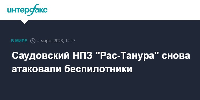 Москва. 4 марта. INTERFAX.RU - В Саудовской Аравии в среду удалось отбить атаку беспилотника на нефтеперерабатывающий завод "Рас-Танура", сообщает "Аль-Арабийя" со ссылкой на министерство обороны страны.
