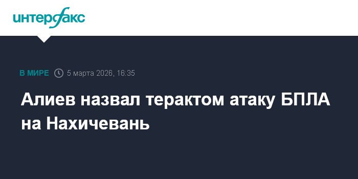 "Сегодня со стороны Ирана был совершён террористический акт против территории Азербайджана, против Азербайджанского государства. Иранское государство подвергло обстрелу территорию Нахичеванской Автономной Республики с помощью беспилотных летательных аппаратов", - сказал Алиев.