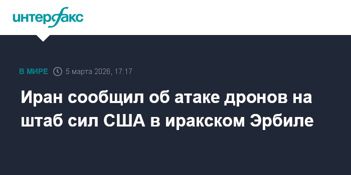 Москва. 5 марта. INTERFAX.RU - Сухопутные войска Ирана при помощи беспилотников атаковали штаб ВС США в иракском Эрбиле, сообщает в четверг агентство "Тасним".