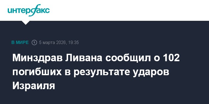 Москва. 5 марта. INTERFAX.RU - Удары Израиля по территории Ливана за последние дни привели к гибели 102 человек, сообщают в четверг ближневосточные СМИ со ссылкой на ливанский Минздрав.