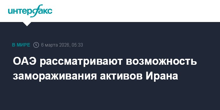 Москва. 6 марта. INTERFAX.RU - Объединенные Арабские Эмираты (ОАЭ) рассматривают возможность замораживания иранских активов на миллиарды долларов в ответ на удары Тегерана по стране, сообщает Wall Street Journal со ссылкой на осведомленные источники.