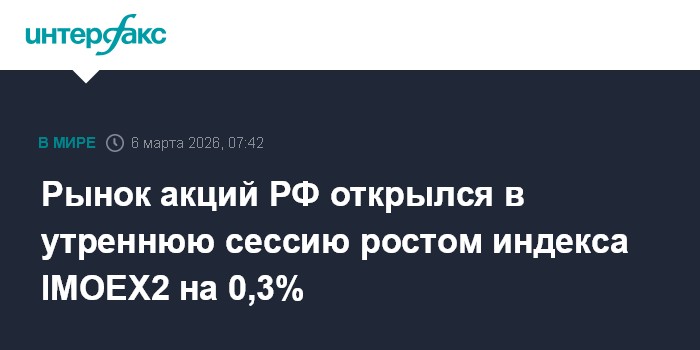 Рынок акций РФ открылся в утреннюю сессию ростом индекса IMOEX2 на 0,3%