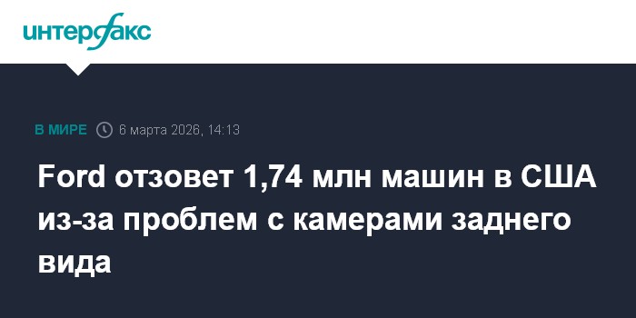 Москва. 6 марта. INTERFAX.RU - Ford Motor отзывает около 1,74 млн автомобилей в США из-за проблем с камерами заднего вида, сообщило Национальное управление по безопасности дорожного движения (NHTSA).