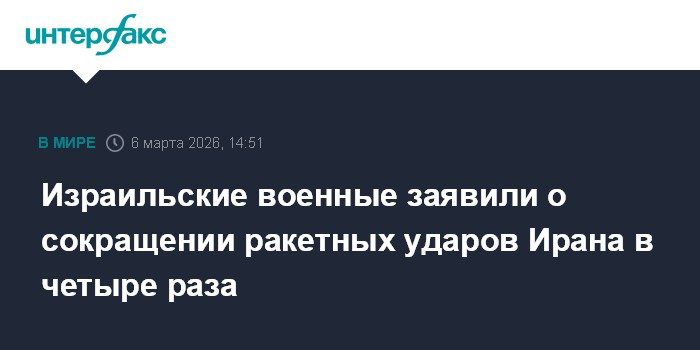 Москва. 6 марта. INTERFAX.RU - В Армии обороны Израиля (ЦАХАЛ) полагают, что с начала конфликта с Ираном количество запускаемых им в день ракет сократилось более чем в четыре раза, сообщает The Times of Israel.