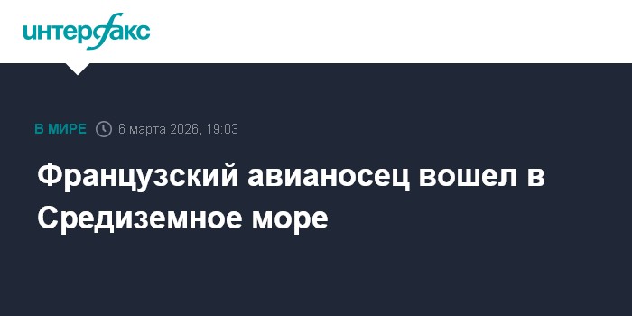 Москва. 6 марта. INTERFAX.RU - Французский авианосец "Шарль де Голль", пройдя Гибралтар, вошел в Средиземное море, направляясь к берегам Ближнего Востока, сообщил портал Itamilradar.