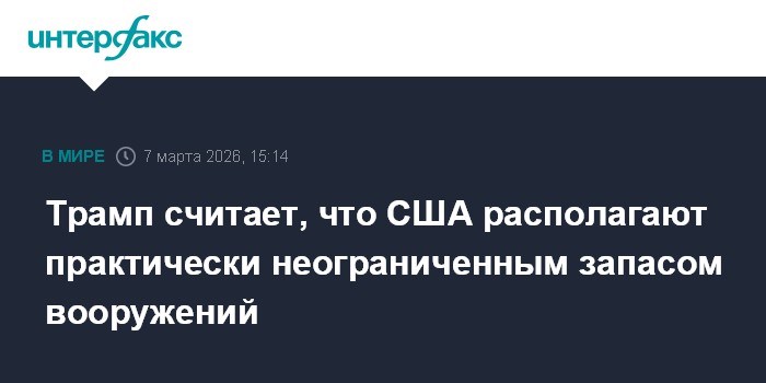 Москва. 7 марта. INTERFAX.RU - Американский президент Дональд Трамп сообщил, что США обладают практически неограниченным запасом вооружений.