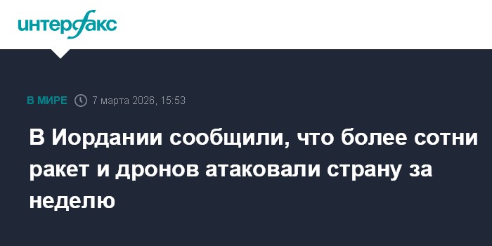 Москва. 7 марта. INTERFAX.RU - С момента начала американо-израильской операции против Ирана объекты на территории Иордании атаковали 119 ракет и беспилотников, сообщил в субботу на пресс-конференции представитель иорданских вооруженных сил Мустафа Хийяри, его слова приводит Associated Press.