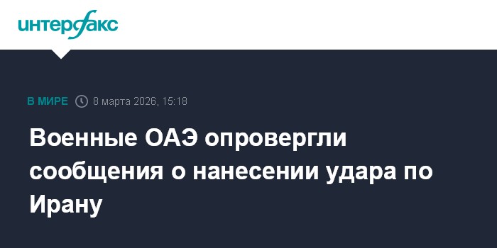 Москва. 8 марта. INTERFAX.RU - Власти ОАЭ заявили, что армия страны не наносила в воскресенье удара по гражданскому объекту в Иране, сообщает The Jerusalem Post.