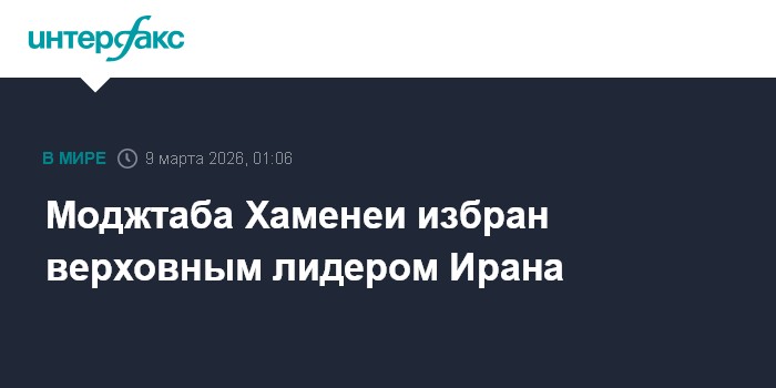 Москва. 9 марта. INTERFAX.RU - Верховным лидером Ирана избран Моджтаба Хаменеи - сын предыдущего главы государства Али Хаменеи, сообщило иранское агентство Fars.