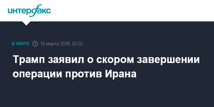 Москва. 10 марта. INTERFAX.RU - Американо-израильская операция против Ирана скоро завершится, заявил президент США Дональд Трамп.