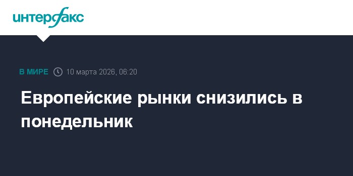 Европейские рынки снизились в понедельник