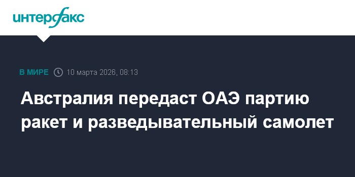 Москва. 10 марта. INTERFAX.RU - Королевские ВВС Австралии направят разведывательный самолет и партию ракет класса "воздух-воздух" в Объединенные Арабские Эмираты для "защиты и обеспечения безопасности воздушного пространства над Персидским заливом", заявил на пресс-конференции австралийский премьер-министр Энтони Элбаниз.