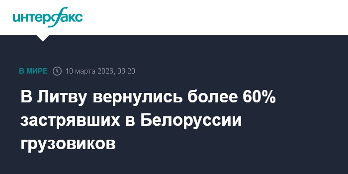 Москва. 10 марта. INTERFAX.RU - Более 60% единиц грузового транспорта, застрявшего в Белоруссии после закрытия границы в октябре, возвращено в Литву, заявил представитель литовского Национального центра кризисного управления (NKVC) Дариус Бута. Об этом сообщает LRT.