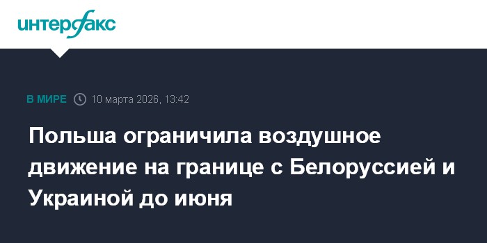 "По запросу Оперативного командования видов вооруженных сил с 10 марта по 9 июня 2026 года в восточной части Польши вводятся ограничения воздушного движения", - говорится в сообщении.