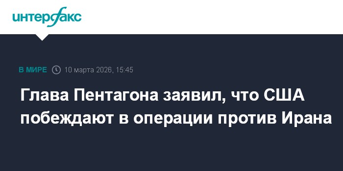Москва. 10 марта. INTERFAX.RU - Соединенные Штаты побеждают в военной операции против Ирана, концентрируясь на выполнении поставленных задач, заявил во вторник на пресс-конференции министр войны США Пит Хегсет.