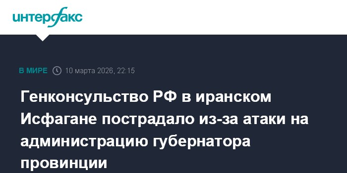 Москва. 10 марта. INTERFAX.RU - В МИД РФ заявили, что Генконсульство РФ в иранском Исфагане 8 марта пострадало в результате атаки на администрацию губернатора одноименной провинции.