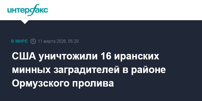 "10 марта американские войска уничтожили несколько иранских военно-морских судов, в том числе 16 минных заградителей вблизи Ормузского пролива", - говорится в сообщении командования.