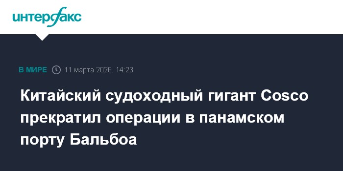 Москва. 11 марта. INTERFAX.RU - Китайский судоходный и логистический гигант Cosco Shipping прекратил операции в панамском порту Бальбоа. Об этом сообщает агентство Bloomberg со ссылкой на латиноамериканское издание La Prensa.