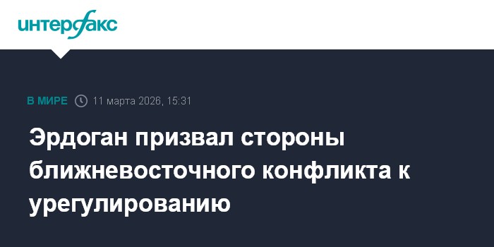Москва. 11 марта. INTERFAX.RU - Президент Турции Реджеп Тайип Эрдоган настаивает на прекращении конфликта Израиля, Ирана и США, так как опасается, что в противном случае конфликт может охватить весь ближневосточный регион, сообщает Anadolu.