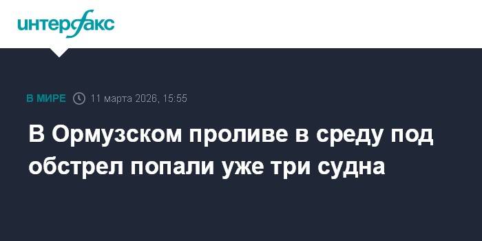 Москва. 11 марта. INTERFAX.RU - В общей сложности три транспортных судна, проходившие через Ормузский пролив, попали под обстрелы в среду. Об этом сообщают в Управлении морских торговых операций Великобритании (UKMTO).