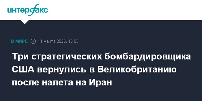 Москва. 11 марта. INTERFAX.RU - Группа из трех стратегических бомбардировщиков ВВС США B-1B Spirit выполнила очередную боевую миссию в небе над Ираном и в среду в полном составе вернулась на авиабазу Фэрфорд в Великобритании, по данным авиационного ресурса Military Air Tracking Alliance (MATA).