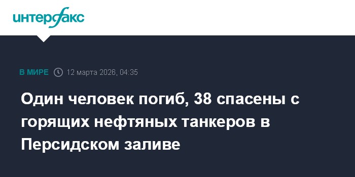 Москва. 12 марта. INTERFAX.RU - Один человек погиб, еще 38 были спасены с танкеров в территориальных водах Ирака, загоревшихся в результате нападения на них, сообщает телеканал CNN.