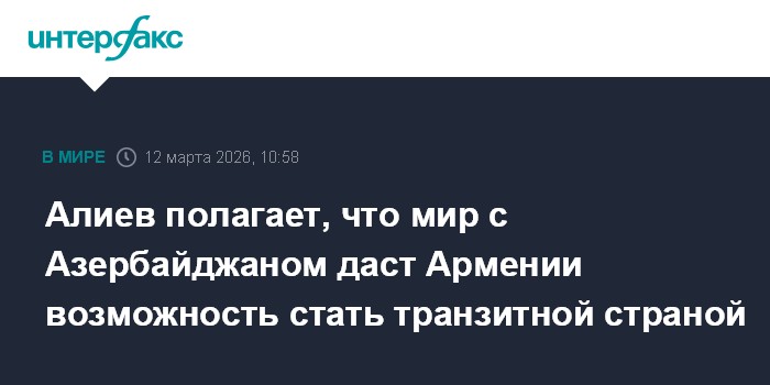 Москва. 12 марта. INTERFAX.RU - Мир с Азербайджаном позволит Армении стать транзитной страной, заявил азербайджанский лидер Ильхам Алиев на открытии XIII Глобального Бакинского форума.