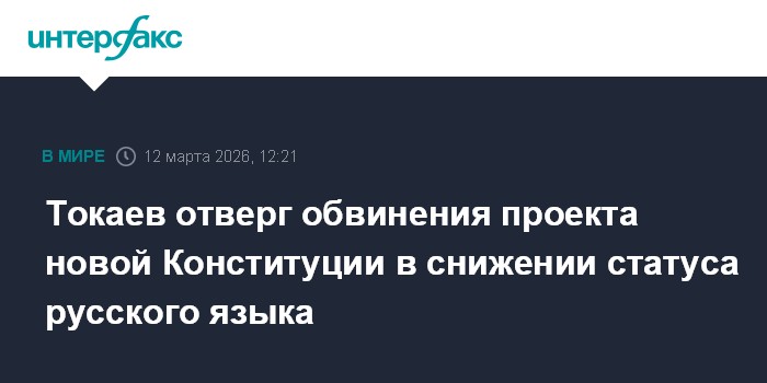 Москва. 12 марта. INTERFAX.RU - Президент Казахстана Касым-Жомарт Токаев назвал необоснованными сообщения о нарушении территориальной целостности и снижении статуса русского языка в проекте новой Конституции Казахстана. Он заявил об этом на республиканском форуме депутатов маслихатов всех уровней.