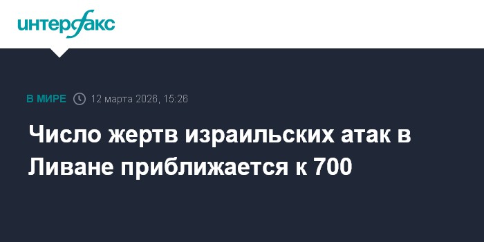 Москва. 12 марта. INTERFAX.RU - Министерство информации Ливана заявило, что со 2 марта в результате израильских ударов по Ливану погибли 687 человек, сообщает в четверг газета Le Figaro.