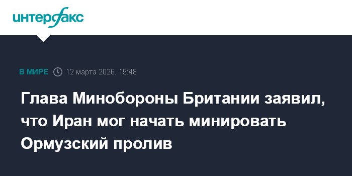 Москва. 12 марта. INTERFAX.RU - Министр обороны Британии Джон Хили заявил, что вероятно, Иран приступил к минированию Ормузского пролива.