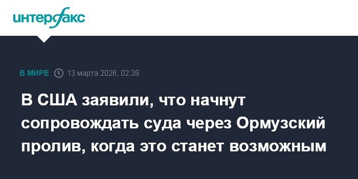 Москва. 13 марта. INTERFAX.RU - Министр финансов США Скотт Бессент заявил, что американские военно-морские силы начнут сопровождать нефтяные танкеры через Ормузский пролив, как только появится такая возможность.