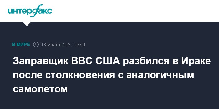 Москва. 13 марта. INTERFAX.RU - Американский самолет-заправщик KC-135, потерпевший крушение в Ираке, столкнулся в небе с аналогичным самолетом ВВС США, сообщили газета The Washington Post и телеканал CBS News.