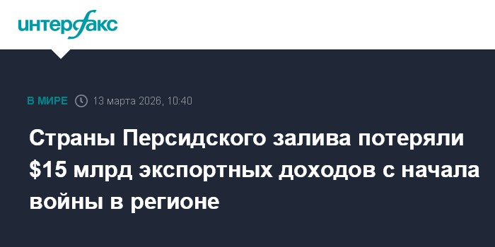 Москва. 13 марта. INTERFAX.RU - Нефтедобывающие страны Персидского залива потеряли порядка $15,1 млрд экспортных доходов с начала военного конфликта на Ближнем Востоке из-за перекрытия Ормузского пролива, в результате которого поставки миллионов баррелей нефти оказались заблокированными, пишет газета Financial Times.