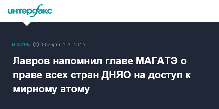 Москва. 13 марта. INTERFAX.RU - В своей работе МАГАТЭ важно концентрироваться на задачах, которые изначально были перед ней поставлены, в том числе над реализацией доступа к мирному атому всех стран - участниц Договора о нераспространении ядерного оружия (ДНЯО), заявил глава МИД России Сергей Лавров на встрече с директором МАГАТЭ Рафаэлем Гросси.