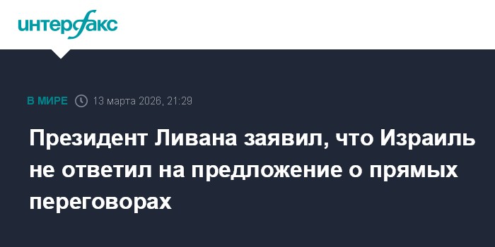Москва. 13 марта. INTERFAX.RU - Ливан не получил ответа от Израиля на предложение о прямых переговорах для прекращения боевых действий, заявил президент Ливана Жозеф Аун на встрече с генсеком ООН Антониу Гутерришем в Бейруте. Об этом пишет Orient Le Jour.
