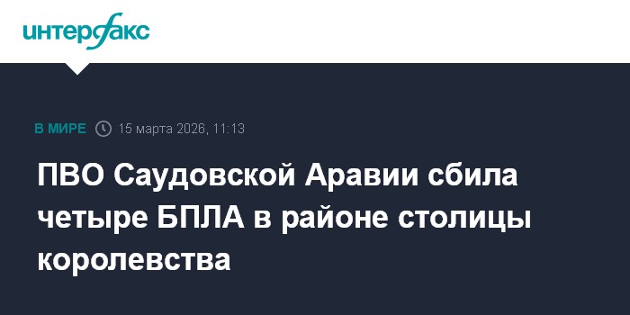 Москва. 15 марта. INTERFAX.RU - Минобороны Саудовской Аравии сообщило о перехвате четырех беспилотников в районе столичной агломерации Эр-Рияда, передает в воскресенье Al Jazeera.