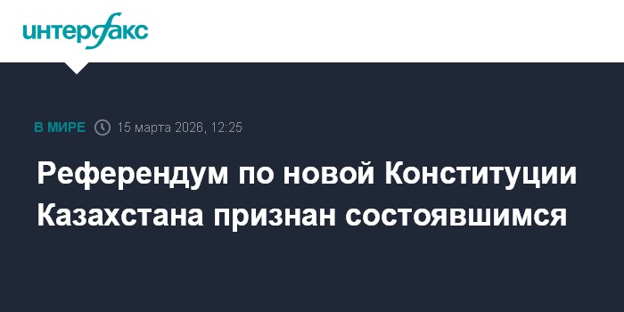 Москва. 15 марта. INTERFAX.RU - Референдум по новой казахстанской Конституции признан состоявшимся, явка к 14:00 составила 51,93%, сообщил секретарь Центральной избирательной комиссии Шавхат Утемисов.