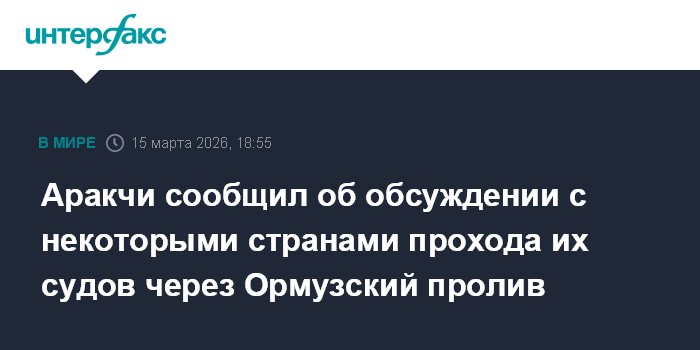 Москва. 15 марта. INTERFAX.RU - Власти Ирана контактируют с некоторыми странами по вопросу безопасного использования Ормузского пролива, заявил глава иранского МИД Аббас Аракчи.