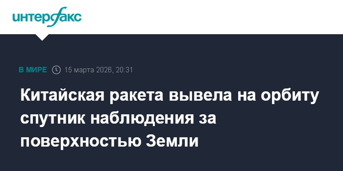 Москва. 15 марта. INTERFAX.RU - Китайская ракета-носитель "Чанчжэн-6А" ("Великий поход-6А") во воскресенье вывела на орбиту спутник дистанционного зондирования Земли "Яогань-50 02" (Yaogan-50 02) для гражданских целей, сообщил телеканал CGTN.