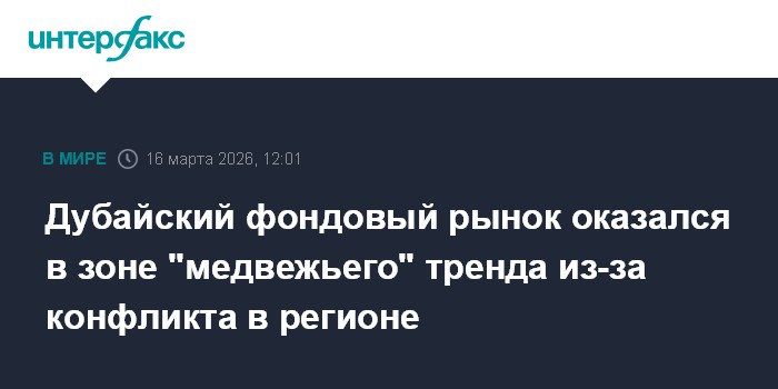 Москва. 16 марта. INTERFAX.RU - Фондовый рынок Дубая вошел в зону "медвежьего" тренда на фоне военных действий на Ближнем Востоке, результатом которых стал хаос в энергетической и судоходной отраслях, а также в сфере недвижимости и туристическом секторе.