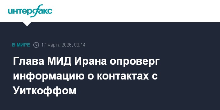 Москва. 17 марта. INTERFAX.RU - Министр иностранных дел Ирана Аббас Аракчи заявил, что последний раз он общался со спецпосланником президента США Стивом Уиткоффом еще до начала американских ударов по Ирану.