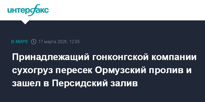 Принадлежащий гонконгской компании сухогруз пересек Ормузский пролив и зашел в Персидский залив