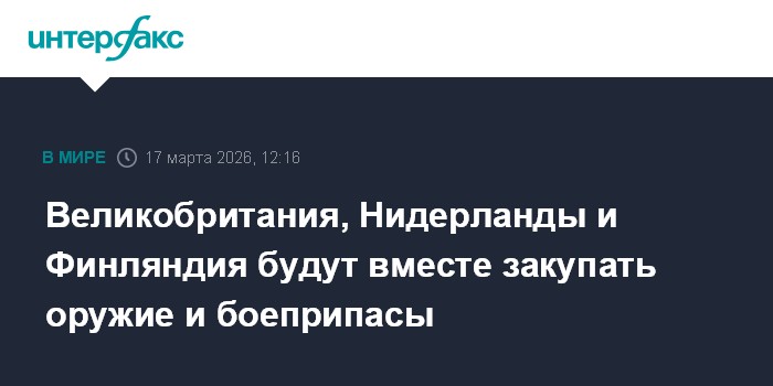 Москва. 17 марта. INTERFAX.RU - Власти Великобритании, Финляндии и Нидерландов договорились запустить к 2027 году новый механизм, который позволит ускорить совместные инвестиции стран в оборону и нарастить коллективные закупки оружия, боеприпасов и военного оборудования, сообщили западные СМИ.