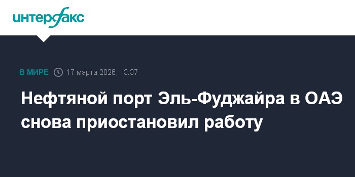 В минувший понедельник, а также в субботу на прошлой неделе Эль-Фуджайру уже атаковали. В портовый город Эль-Фуджайра идет нефтепровод, который позволяет ОАЭ транспортировать нефть в обход Ормузского пролива, который оказался в значительной степени перекрыт из-за конфликта США и Израиля с Ираном.