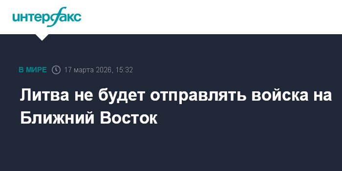 Москва. 17 марта. INTERFAX.RU - Министр обороны Литвы Робертас Каунас заявил журналистам, что страна не рассматривает возможность отправки своих вооруженных сил на Ближний Восток и сосредоточена на проблемах собственного региона. Об этом сообщают литовские СМИ.