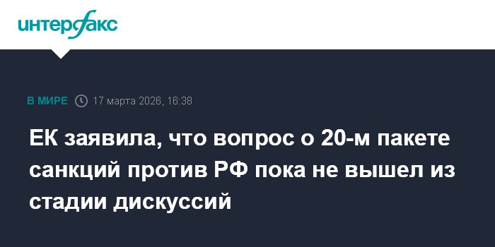 ЕК заявила, что вопрос о 20-м пакете санкций против РФ пока не вышел из стадии дискуссий